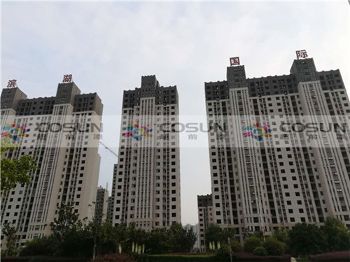 河南漯河高鐵站東南角濱湖國際工地面積15萬平方,為了追求高端住宅的需要,能從視覺上彰顯整個建筑的高雅與莊重之美,甲方在經過嚴格考察篩選后,超前涂料順利入圍。項目中指定超前真石漆做為外墻專用漆。