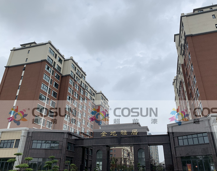蘭考金地雅居面積6萬平方,在市場激烈的競爭之下,超前涂料以優質的原材料、專業的技術團隊、嚴謹的生產流程及優質的售后服務贏得到蘭考億元實業有限公司的認可,蘭考億元決定外墻用漆選用超前真石漆